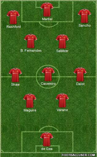 Onana · YORO · De Ligt · Maguire · Martinez · Ugarte · Mainoo · Amad · Garnacho · Hojluand · Bruno