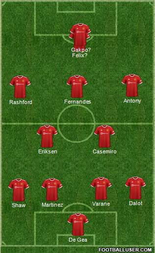Van der Sar (DeGea/Barthez) · Ferdinand (Martinez/Varane) · Vidic (Evans/Brown) · G.Neville (Valencia/Dalot) · Evra (Silvestre/Shaw) · Keane (Carrick/Hargreaves) · Scholes (Pogba/Ji Sung Park) · Rooney (Fernandes/Mata) · Ronaldo (Tevez/Rashford) · Giggs (Beckham/Nani) · Van Nistelrooy (Van Persie/Berbatov)