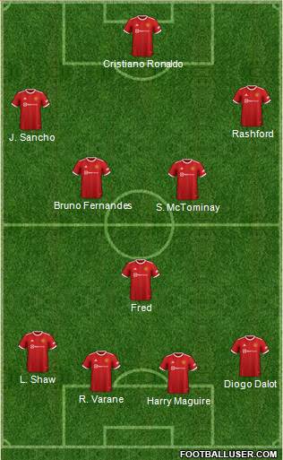 24. Onana (1. Bayindir) · 23. Luke Shaw (12. Malacia) · 6. Martinez (2. Todibo) · 5. De Ligt (35. Evans) · 20. Dalot (29. Wan Bissaka) · 25. Ugarte (4. Amrabat) · 14. Mainoo (18. Casemiro) · 8. Bruno Fernandes (7. Mason Mount) · 9. Hojlund (19. Zirkzee) · 11. Chiesa (21. Antony) · 17. Garnacho (10. Rashford)