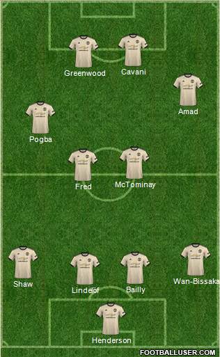 DE GEA · LINDELOF · SHAW · MAGUIRE · WAN-BISSAKA · FRED · FERNANDES · VAN DE BEEK · McTOMINAY · RASHFORD · MARTIAL