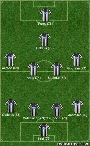 Krul · Williamson · Coloccini · Dummett · Janmaat · Colback · Anita · Cabella · M. Sissoko · Ayoze Perez · P. Cisse