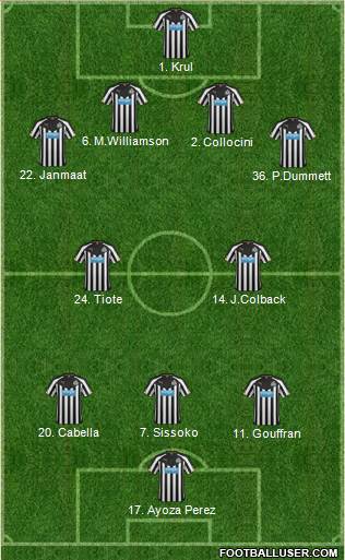 1 Krul · 2 Coloccini · 6 Williamson · 8 Anita · 22 Janmaat · 30 Abeid · 14 Colback · 4 R.Taylor · 28 Ameobi · 20 Cabella · 17 Ayoze
