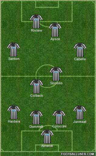 Armstrong · R. Aaarons · Obertan · Ryan Taylor · Colback · Abeid · Janmaat · Haïdara · Coloccini · Dummett · Elliot
