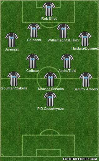 Krul (Elliot · Alnwick) · Coloccini (Good) · S.Taylor (Williamson) · Janmaat (R.Taylor) · Dummett (Haidara) · Colback (Anita) · Tioté (de Jong) · Gouffran (Aarons · Jonas) · Cabella (Obertan) · Sissoko (Sam Ameobi) · Ayoze (Rivière · Cissé · Ferreira)