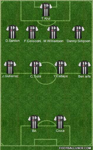 Krul · Coloccini · S.Taylor · Simpson · R.Taylor · Tioté · Cabaye · Guttiérez · Ben Arfa · Ba · Cissé