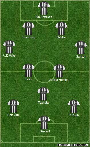 Leali · Ranocchia · Nastasic · Santon · Clyne · Tiote · Strootman · Cabaye · Ben Arfa · Cissé · Ba