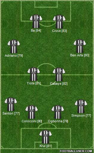 Krul · Williamson · Coloccini · Perch · Santon · Tiote · Jonas · Cabaye · Ba · Ben Arfa · Cisse