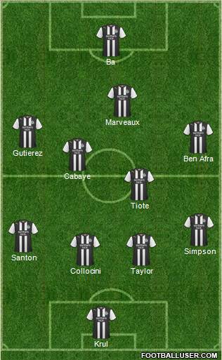 Krul · coloccini · Santon · Breno · R.Taylor · Marchisio · Cabaye · Pastore · Ben Arfa · Leon Best · Demba ba
