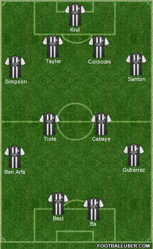 Ba · Ben Arfa · Santon · Jonas · Cabaye · Tiote · Simpson · R.Taylor · S.Taylor · Coloccini · Krul