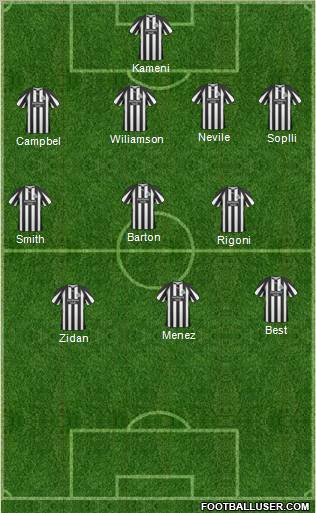 Marquez · Hangeland · Sagna · Taiwo · Huddlestone · Meireles · Riquelme · Di Natale · Defoe · Pazzini
