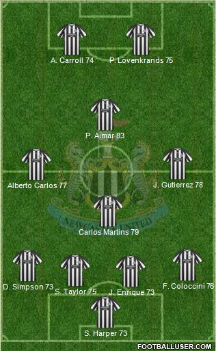 Harper · Taylor · Coloccini · Enrique · Simpson · Barton · Nolan (c) · Gutierrez · Ben Arfa · Best · Ameobi
