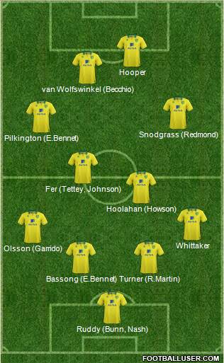 Van Wolfswinkel · Tettey · Fer · Redmon · Johnson · Howson · Whittaker · Martin · Garrido · Turner · Ruddy