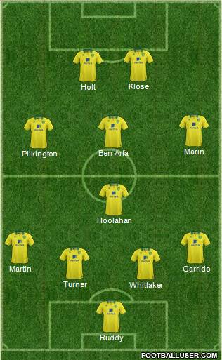 Ruddy · Turner · Bassong · Garrido · Whittaker · Butterfield · Tettey · Snodgrass · Pilkington · Hoolahan · Holt