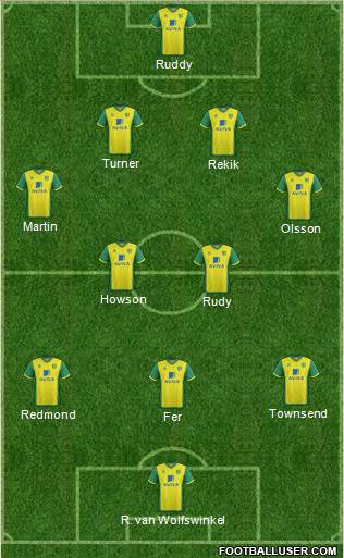 Ruddy · R. Bennet · turner · Martin · Olsson · Howson · Fer · Bradley Johnson · Redmond · Hoolahan · Hooper