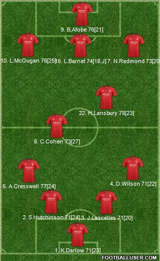 Darlow · Hobbs · Wilson · Lichaj · Cohen · Majewski · Guedioura · Halford · Reid · Lansbury · Mackie