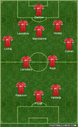Darlow (72) · Wilson (71) · Mancienne (74) · Lascelles (71) · Lichaj (71) · Blackett (67) · Vaughan (70) / Bazoer (67) · Diakite (72) / Zelalem (73) · Paterson (73) · Ondaan (73) · Assombalonga (74) / Lee Keun Ho (74)