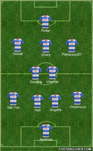 Smithies · Hall · Onuoha (c) · Konchesky · Perch · Faurlin · Luongo · Hoilett · Washington · Phillips · Polter