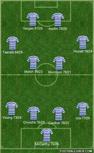 Austin · Hoilett · Kranjcar · J. Barton · Jenas · O'Neil · D. Simpson · Assou-Ekotto · Hill · R. Dunne · Green