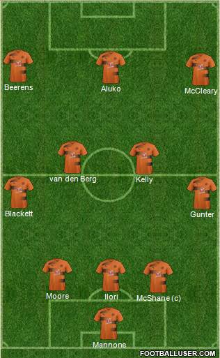 Mannone · Bacuna · Moore · McShane (c) · Gunter · Kelly · van den Berg · Aluko · Edwards · Beerens · Kermorgant