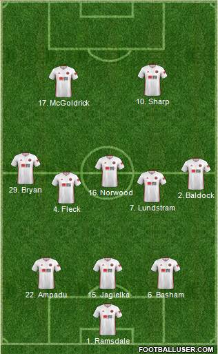 Ramsdale · Stevens · Ampadu · Egan · Norwood · Fleck · Lundstram · Osborn · Baldock · McGoldrick · Burke