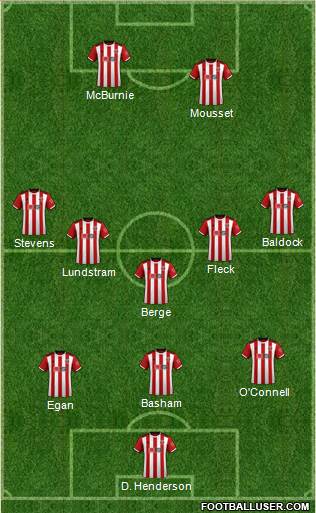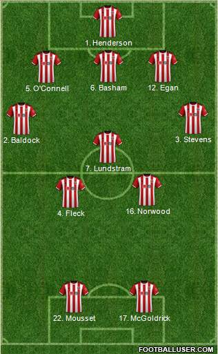 9- O. McBurnie · 99- M. Dembélé* · 2- G. Baldock · 7- J. Lundstram · 18- F. Delph* · 3- E. Stevens · 14- W. Carvalho* · 6- C. Basham · 12- J. Egan · 5- J. O'Connell · 1- D. Henderson