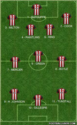 D. Henderson · Egan · Jagielka · O'Connell · Norwood · Fleck · Stevens · K. Freeman · L. Freeman · McGoldrick · Sharp