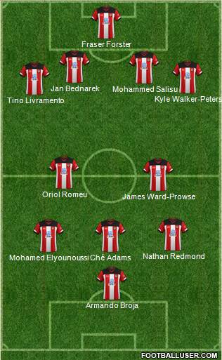 31 Bazunu · 6 Ćaleta-Car · 22 Salisu · 37 Bella-Kotchap · 15 Perraud · 24 Elyounoussi · 45 Lavia · 8 Ward-Prowse · 3 Maitland-Niles · 7 Aribo · 10 Adams