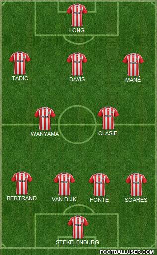 Stekelenberg · Fonte · Van Djik · Bertrand · Soares · Wanyama · Clasie · Tadic · Mane · Davis · Pelle