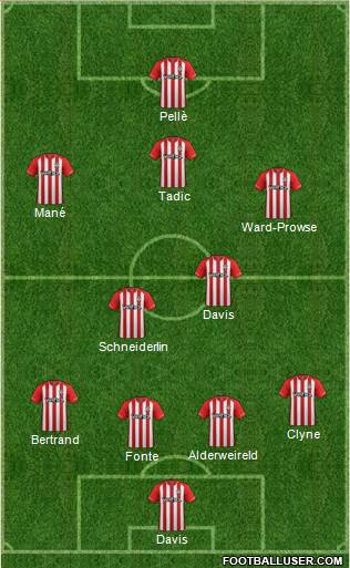 Gazzaniga · Alderweireld · Fonte · Clyne · Bertrand · Wanyama · Reed · Davis · Elia · Mané · Pellè