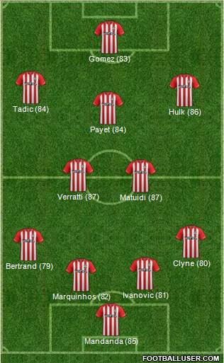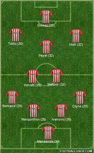 Forster · Marc Bartra · Evans · Clyne · Bertrand · Wanyama · Schneiderlin · Sneijder · Manè · Tadìc · Pellè