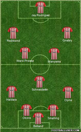 Forster · Stones (Fonte) · Lascelles (Gardos) · Davies (Targett) · Clyne · Schneiderlin (Cork) · Chalobah (Morrison) · Ward-Prowse (Reed) · Tadic (Isgrove) · Rodriguez (Mané) · Pellé (Paco Alcacer)