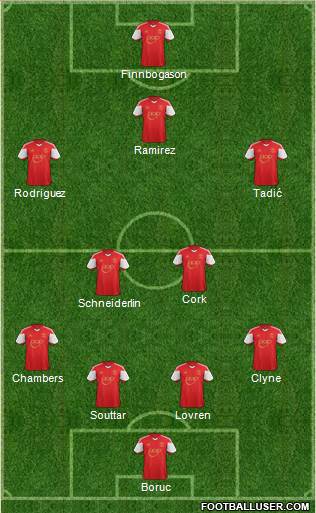 Boruc · Rojo · van Dijk · Bertrand · Clyne · Schneiderlin · Wanyama · Taider · Tadic · Rodriguez · Pelle
