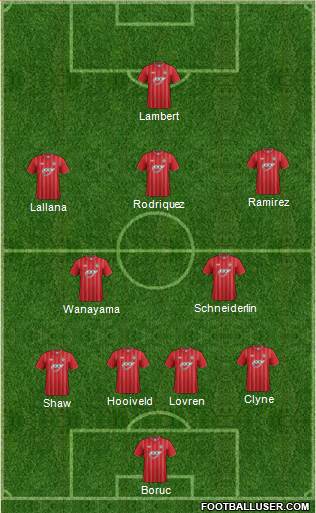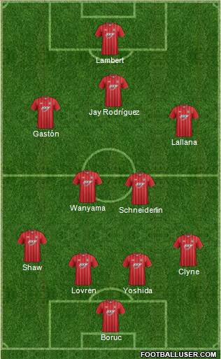 Artur Boruc · Dejan Lovren · Maya Yoshida · Nathaniel Clyne · Luke Shaw · Morgan Schneiderlin / Victor Wanyama · James Ward-Prowse · Gaston Ramirez · Adam Lallana · ?? · Rickie Lambert / Pablo Osvaldo