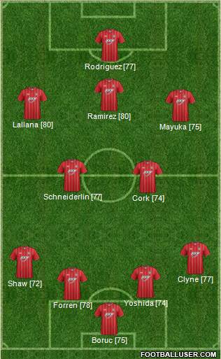 Boruc · Yoshida · Jose Fonte · Shaw · Clyne · Schneiderlin · Cork · Lallana · Puncheon · Rodriguez · Lambert