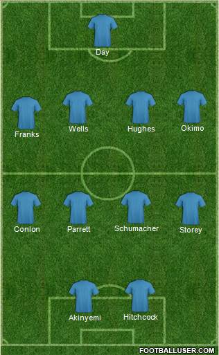 Louis Roberts · Darren Larvin · Tony Loftus · Jake Windys · Richard Dale · Chris Le Blond · James Bryan · Alex Young · Neil Evans · Lawrence Roberts · Dean Perry Smith