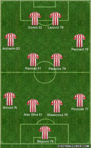 Begovic · Shawcross · Huth · Wilson · Shotton · Whelan · Nzonzi · Cameron · Etherington · Walters · Jones