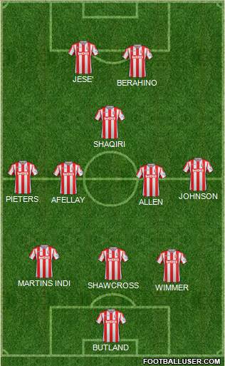 Butland · Shawcross · Wimmer · Zouma · Johnson · Fletcher · Allen · Affelay · Shaqiri · Choupo-Moting · Berahino
