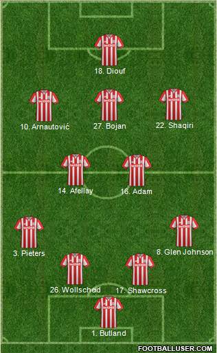 BUTLAND · GLEN JOHNSON · WOLLSCHEID · MUNIESA · PIETERS · IMBULA · WHELAN · ARNAUTOVIC · BOJAN · SHAQIRI · DIOUF