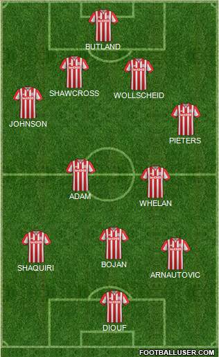 BUTLAND · PIETERS · WOLLSCHEID · SHAWCROSS · JOHNSON · CAMERON · WHELAN · AFELLAY · SHAQUIRI · ARNAUTOVIC · BOJAN