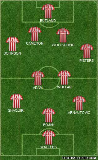 BUTLAND · SHAWCROSS · PIETERS · WOLLSCHEID · JOHNSON · WHELAN · ADAM · BOJAN · SHAQUIRI · ARNAUTOVIC · DIOUF