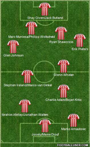 BUTLAND · CAMERON · MUNIESA · PIETERS · JOHNSON · WHELAN · VAN GINKEL · SHAQUIRI · ARNAUTOVIC · AFELLAY · DIOUF
