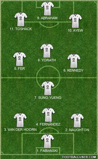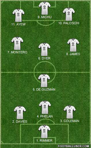 Bony · Routledge · Dyer · Hernandez · Britton · Allen · Robbie James · Coleman · Rangel · Ashley Williams · Fernandez · Freestone