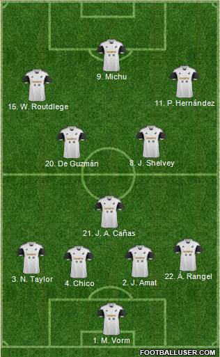 Tremmel · Amat · Williams · Taylor · Rangel · Shelvey · Britton · Pozuelo · P. Hernández · Routledge · Bony