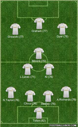 Vorm · Williams · Chico · N.Taylor · Rangel · De Guzman · Britton · Dyer · Pablo Hernandez · Michu · Bony
