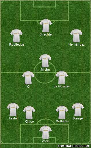 Vorm · Williams · Chico · Davies · Rangel · Britton · Ki · De Guzman · Michu · Dyer · Routledge