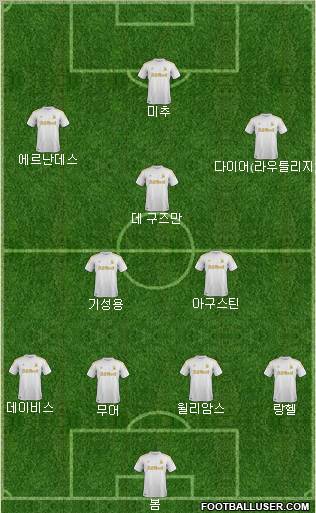 Vorm · Johnson · Williams · Chico · Ki · Britton · De Guzman · Hernandez · Dyer · Graham · Michu