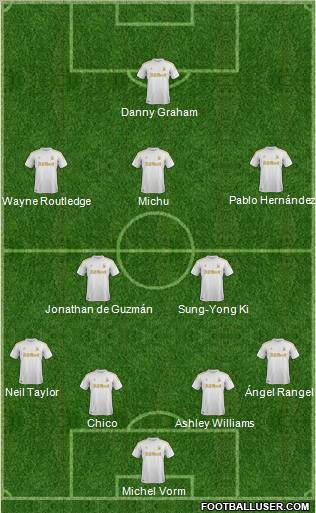 Vorm · Tiendalli · Chico · Davies · Williams · Sung Yueng · Britton · Michu · Dyer · Routledge · Graham