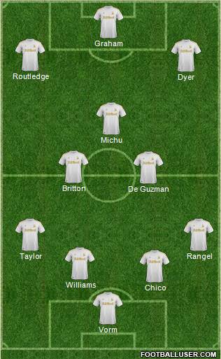 Michel Vorm · Chico Flores · Ashley Williams · Angel Rangel · Neil Taylor · Leon Britton · Sung-Yueng Ki · Jonathan De Guzman · Pablo Hernandez · Wayne Routledge · Michu
