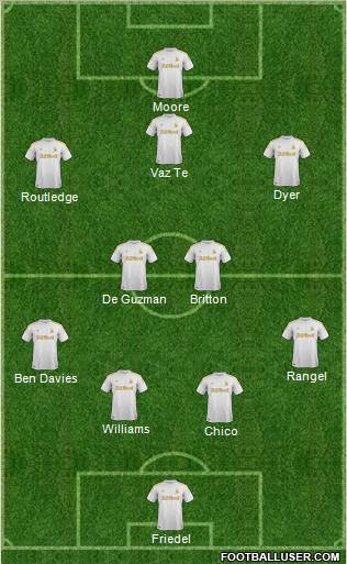 M.Vorm · A.Rangel · A.Williams · Chico · B.Davies · K.Sung-Yueng · De Guzman · L.Britton · Michu · Pablo · Routledge