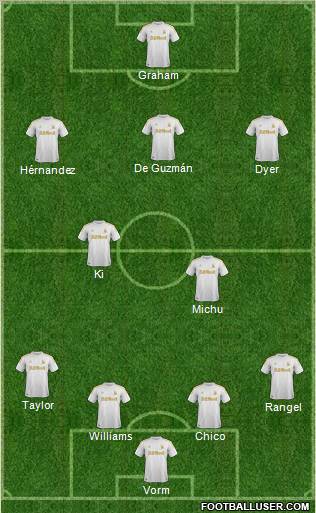 Graham · Dyer · Routledge · Michu · De Gúzman · Britton · Taylor · Rangel · Williams · Chico · Vorm